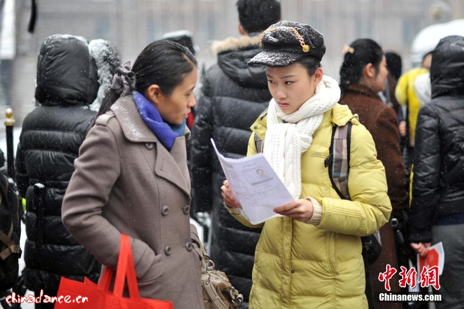 中戲藝考冒雪在京進行,數萬人參加